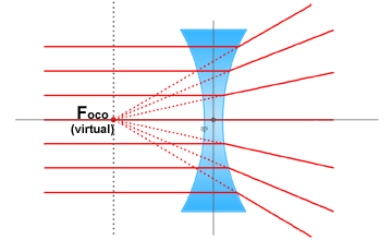 Na figura acima, o observador está no meio mais refringente, ou seja, no meio em que o índice de refração é maior. Observe que os raios de luz provêm da parte inferior da figura, onde o objeto se localiza, e o índice de refração é n2. O ponto I é o local onde a imagem é formada, e o ponto O corresponde à localização do objeto. Temos também dI, que é a distância da imagem até a superfície, e dO, que é a posição do objeto até a superfície.