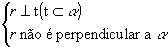Uma reta r é perpendicular a um plano a se, e somente se, r é perpendicular a todas as retas de a que passam pelo ponto de intersecção de r e a.