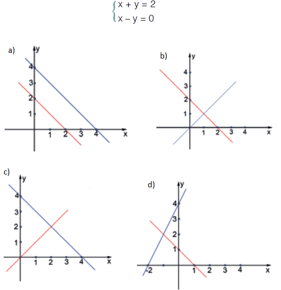 62) (Prova Brasil) Observe o gráfico a seguir: Esse gráfico é a solução (representação geométrica) do sistema: